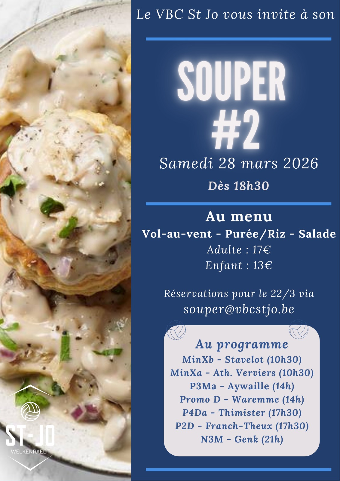 Nos équipes P1M, P3D et P4Da ont le plaisir de vous convier au second souper du club cette saison